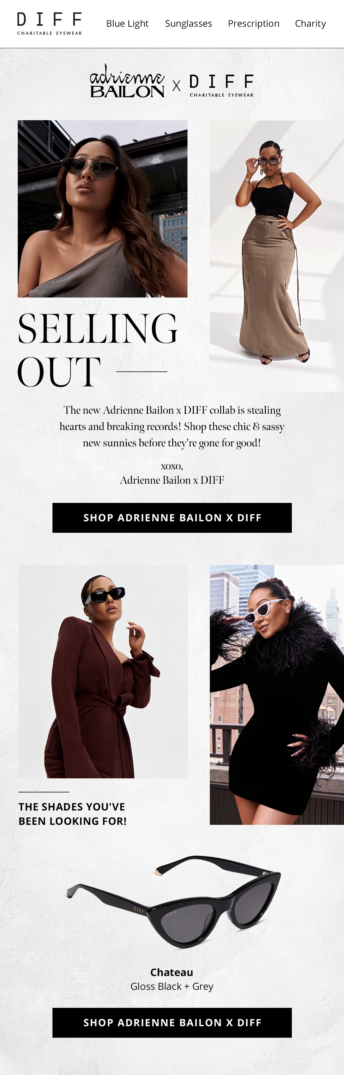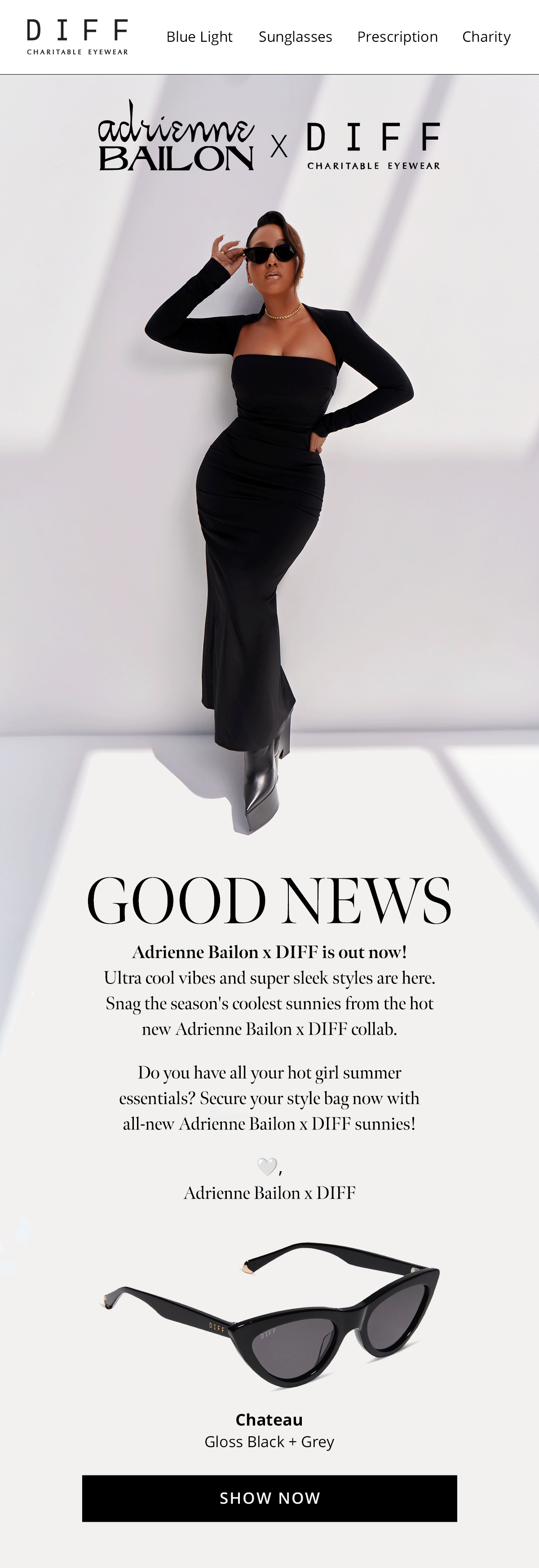 The superstar and beloved personality brings edgy, cool confidence to this sunnies collection. Designed for ‘all eyes on you,’ from uptown energy to downtown parties. Part of DIFF’s influencer collaborations.