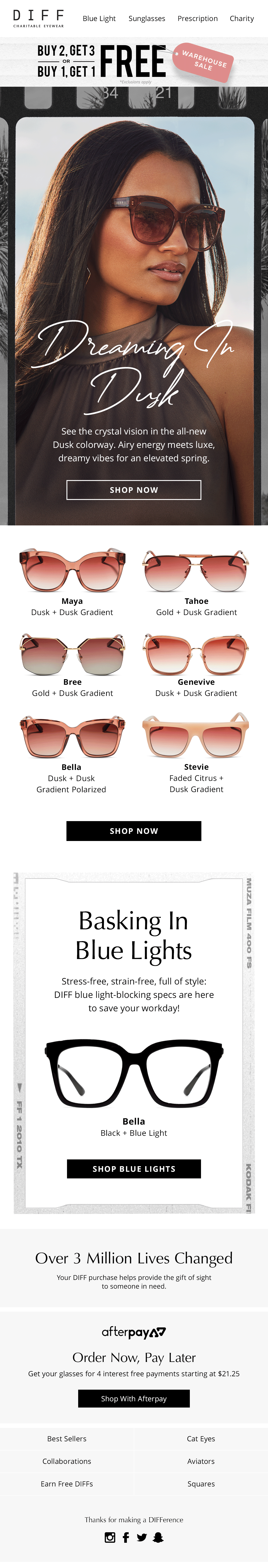 Branding + Web & Email Assets The sale customers loved returned for another season with Buy 2, Get 3 Free + Buy 1, Get 1 Free deals sitewide. Slide 1 Slide 1 (current slide) Slide 2 Slide 2 (current slide) Spring Emails + Warehouse Sale