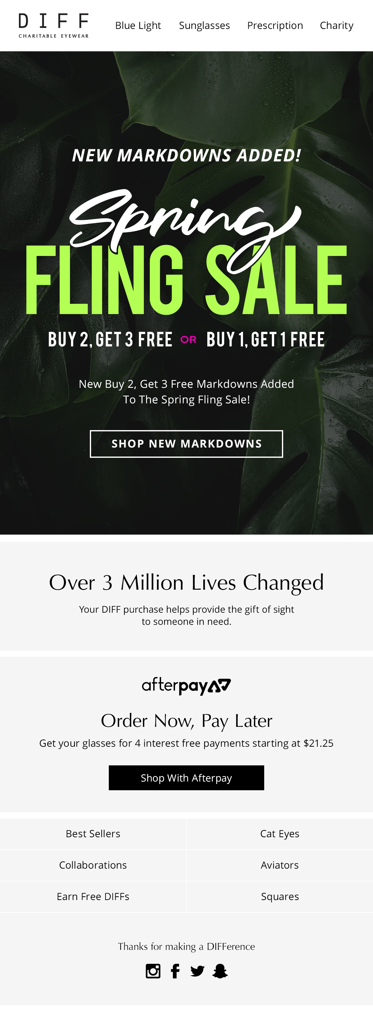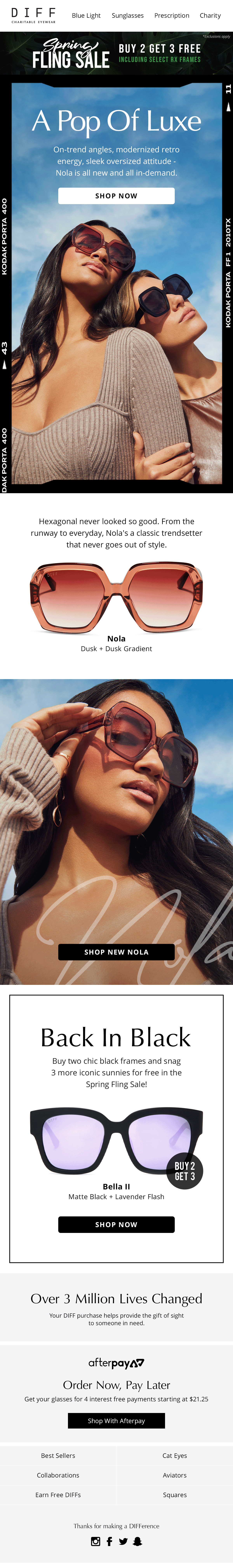 Branding + Ads + Email & Web Assets Savings were in bloom! Promoting the sitewide Buy 2, Get 3 Free + Buy 1, Get 1 Free sale on all frames to celebrate the spring season. Slide 1 Slide 1 (current slide) Slide 2 Slide 2 (current slide) Slide 3 Slide 3 (current slide) Slide 4 Slide 4 (current slide) Slide 5 Slide 5 (current slide) Slide 6 Slide 6 (current slide) Spring Fling Sale Emails + New Nola Product Story New Nola IG Teasers