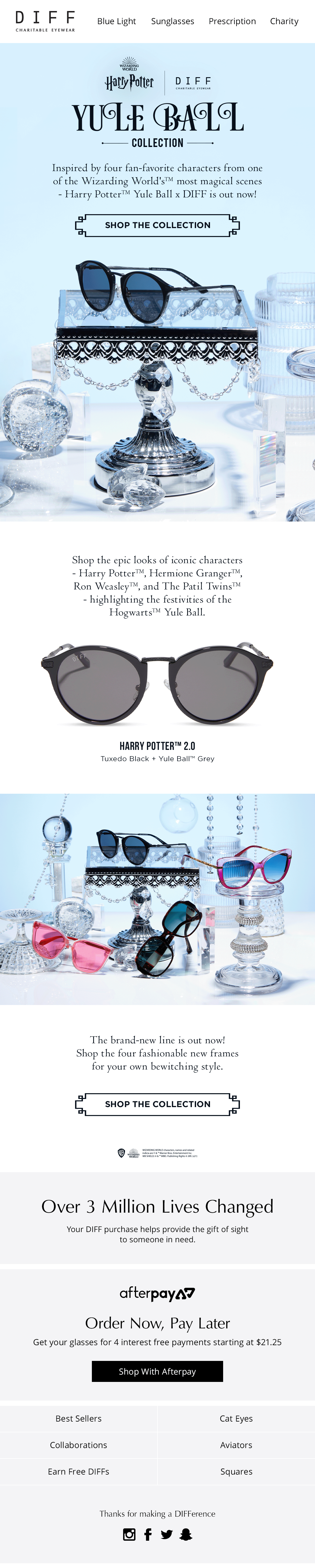 The magical collection expands! These frames were inspired by the Hogwarts™ Yule Ball™ and highlighted even more iconic costume inspirations, like The Patil Twins™. Part of DIFF’s franchise collaborations.